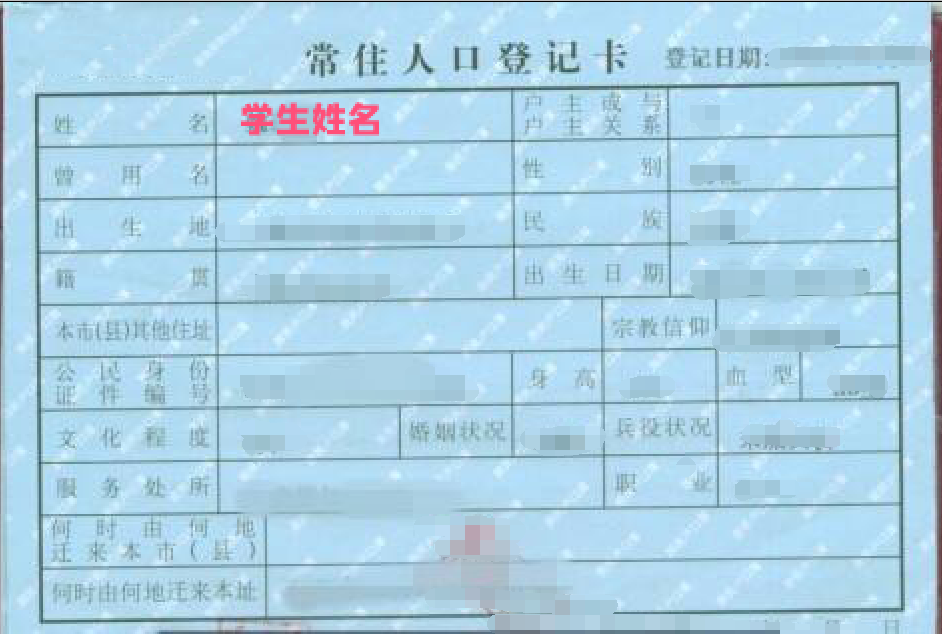 户口簿学生页▼
