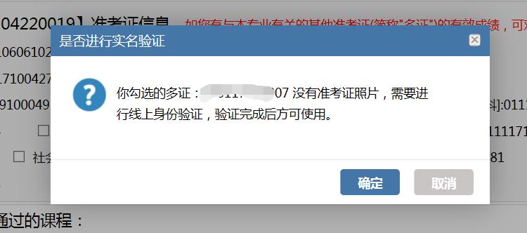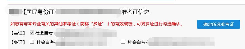 考生有本省多张准考证且其中成绩在本次毕业中需使用,则勾选相应准考证号,并点击【确定所选准考证】。(如勾选的多证没有电子准考证照片,按要求完成线上身份验证上后方可使用)。